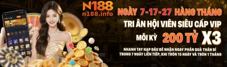 N188 là nhà cái cá cược đổi thưởng chuyên nghiệp, nổi bật tại thị trường Việt Nam với kho trò chơi đa dạng, nền tảng bảo mật cao, giao diện dễ dùng và khuyến mãi hấp dẫn mỗi ngày. Từ slot game, live casino, bắn cá đến cá cược thể thao, N188 cung cấp tất cả trong một hệ sinh thái hiện đại, tốc độ cao, hỗ trợ 24/7.